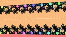 The 3/7-wake of the main cardioid is bounded by the parameter rays with the angles 41/127 or p0101001 and 42/127 or p0101010 .