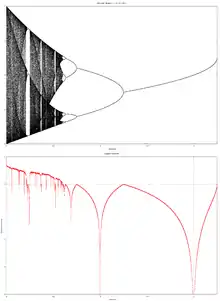 - ↑ demonstrations from wolfram : FeigenbaumsScalingLawForTheLogisticMap