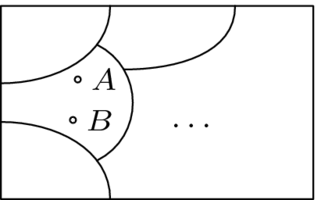 The diagram below shows the collection of all matrices as a box. Inside that box, each matrix lies in some class. Matrices are in the same class if and only if they are interreducible. The classes are disjoint— no matrix is in two distinct classes. The collection of matrices has been partitioned into row equivalence classes.[2]