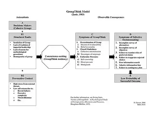 - ↑ Janis, Irving L. Groupthink. Boston: Houghton Mufflin Company, 1982.
