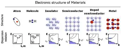 Insulators can be seen as a condensed phase of molecules with little electronic connection between neighboring molecules for conducting a current. Only when excitation is made with an energy above the several eV bandgap will conduction be possible.