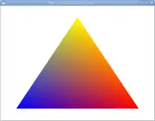Now in the render procedure, we can pass 1 RGB color for each of our 3 vertices. I chose yellow, blue and red, but feel free to use your favorite colors :)