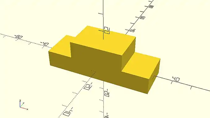 On the example above, the second cube sits exactly on top of the first cube. This is something that should be avoided as it’s not clear to OpenSCAD whether the two cubes form one object together. This issue can be easily solved by always maintaining a small overlap of about 0.001 - 0.002 between the corresponding objects. One way to do so is by decreasing the amount of translation along the Z axis from 10 unit to 9.999 units.