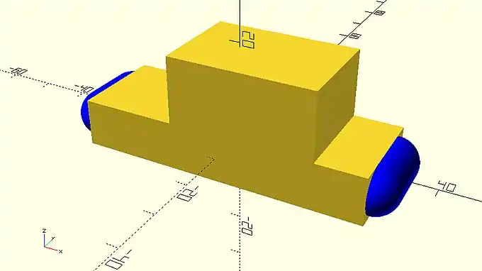 long_car_body.scad use <vehicle_parts.scad> $fa=1; $fs=0.4; base_length = 80; top_length = 50; top_offset = 10; body(base_length=base_length, top_length=top_length, top_offset=top_offset); |