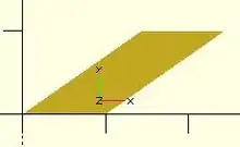 OpenSCAD variables are created by a statement with a name or identifier, assignment via an expression and a semicolon. The role of arrays, found in many imperative languages, is handled in OpenSCAD via vectors.