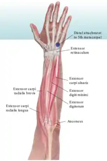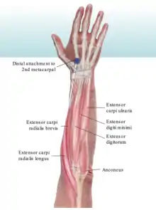 11. A 25-year-old female presents for evaluation of left forearm and wrist pain for the last week. She denies any trauma. She is a professional tennis player and has been practicing more frequently for upcoming matches. She denies any paresthesias. Her medical history is unremarkable. Her vital signs are stable. Muscle strength testing, deep tendon reflexes, and sensation testing are unremarkable. She notes tenderness when palpated at the lateral humerus. What is the initial counterstrain setup for a tenderpoint associated with the hypertonic muscle which muscle originates at the lateral humerus and inserts at the base of the second metacarpal causing her symptoms?