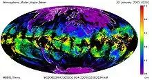 It should be noted that water (H2O) makes a significant component of the Earth’s atmosphere, as evaporated gas from Earth’s liquid oceans, lakes, and rivers. The amount of water vapor in the atmosphere is measured as Relative humidity. Relative humidity is the ratio (often given as a percentage) between the partial pressure of water vapor to the equilibrium pressure of liquid water at a given temperature on a smooth surface. A relative humidity of 100% would mean that the partial pressure water vapor is equal to the equilibrium pressure of liquid water, and would condense to from droplets of water, either as rain or dew on a glass window. Note that relative humidity is NOT an absolute measure of atmospheric water vapor content, for example a measured relative humidity of 100% does NOT mean that the air contains 100% water vapor, nor does 25% relative humidity mean that it contains 25% water vapor. In fact, water vapor (H2O) accounts for only between 0 to 4% of the total composition of the atmosphere, with 4% values found in equatorial tropical regions of the planet, such as rainforests. In most places, water vapor (H2O) represents only trace amounts of the atmosphere and is found mostly close to the surface of the Earth. The amount of water molecules air can hold is related to both its temperature and pressure. The higher the temperature and lower the pressure the more water molecules are found in the air. Water molecules are at an equilibrium with Earth’s air, however, if temperatures on Earth’s surface were to rise above 100° Celsius, the boiling point for water, the majority of water on the planet would be converted to gases, and make up a significant portion of Earth’s atmosphere as water vapor. Scientists debate when temperatures on Earth’s surface dropped below this high value and when liquid oceans first appeared on the surface of the planet, but by 3.8 billion years ago, Earth appeared to have oceans present.