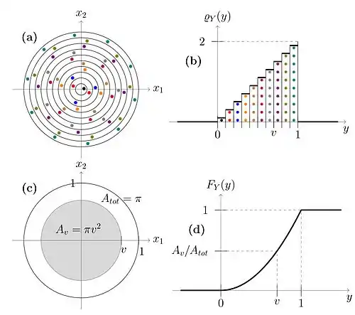 - If we want to obtain random numbers according to a distribution with the pdf , we choose f as the inverse function of the cdf of Z, i.e. . We can now show that Y will have the same distribution as the wanted Z, by using equation 5 and the fact that :