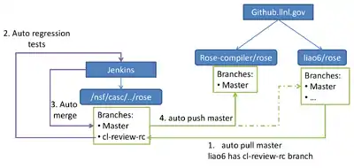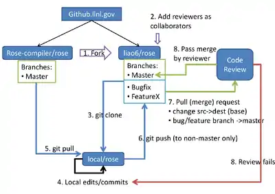 <!-- Please keep the pixel size to 400 so they are clean in the pdf version, Thanks! --> [[File:Rose-compiler-code-review-1.png|thumb|400px|Code review using github.llnl.gov]]