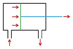 - ^ Note: the surface area of the rod side of the piston is smaller than the other side.