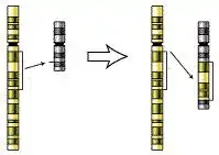 Insertion is the addition of one or more nucleotide base pairs into a DNA sequence. This can happen often when DNA polymerase is slipping in microsatellite regions. Insertions can vary in size, some being only a single nucleotide base pair whereas others can be a section of another chromosome being inserted into the DNA sequence. On the chromosomal level, an insertion refers to the insertion of a larger sequence into a chromosome. This usually occurs due to unequal crossover during meiosis. There are a couple different kinds of insertions that can occur based on how and what is inserted. An N region addition is the addition of non-coded nucleotides during recombination by terminal deoxynucleotidyl transferase. A P nucleotide insertion is the insertion of a palindromic sequence encoded by the ends of the recombining gene segments.