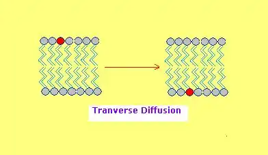 Transverse diffusion or flip-flop involves the movement of a lipid or protein from one membrane surface to the other. Unlike lateral diffusion, transverse diffusion is a fairly slow process due to the fact that a relatively significant amount of energy is required for flip-flopping to occur. Most large proteins do not flip-flop due to their extensive polar regions, which are unfavorable in the hydrophobic core of a membrane bilayer. This allows the asymmetry of membranes to be retained for long periods, which is an important aspect of cell regulation.