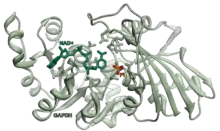 The structure of the protein GAPDH. GAPDH is an enzyme that demonstrates several instances where these proteins regulate RNA expression.