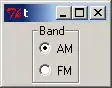 pack [labelframe .lf -text Band] pack [radiobutton .lf.am -text AM -variable band -value AM] pack [radiobutton .lf.fm -text FM -variable band -value FM] set band AM