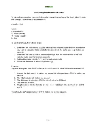 3Use the formula to find acceleration. First write down your equation and all of the given variables. The equation is a = Δv / Δt = (vf - vi)/(tf - ti). Subtract the initial velocity from the final velocity, then divide the result by the time interval. The final result is your average acceleration over that time.