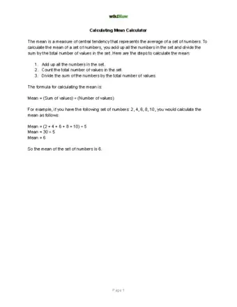 In mathematics, the "mean" is a kind of average found by dividing the sum of a set of numbers by the count of numbers in the set.[1] While it isn't the only kind of average, the mean is the one most people think of when speaking about an average. You can use means for all kinds of useful purposes in your daily life, from calculating the time it takes you to get home from work, to working out how much money you spend in an average week.[2]
