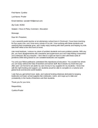 Sample Letters to the President