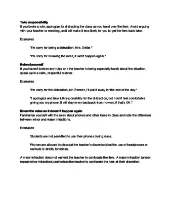 - Alternatively, if you broke a minor rule that does not warrant they take your item, you can calmly point this out and say something like, “I’m sorry for the distraction, I’ll put this away right now and it won’t be an issue again.”