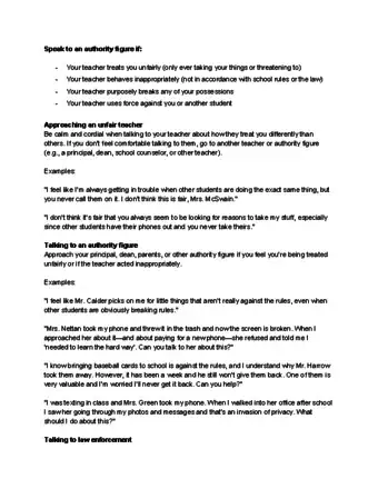 3Notify another adult immediately if a teacher behaves inappropriately. You must obey the rules when you’re at school. A teacher must also enforce the school’s rules. However, if a teacher ever does anything that you believe they may not be allowed to do, tell someone right away.