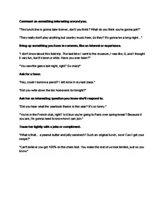 - For example, ask for information. Say, “Do you know which lunch line has pizza today?”
