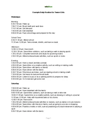 Example Daily Routine for Tween Girls