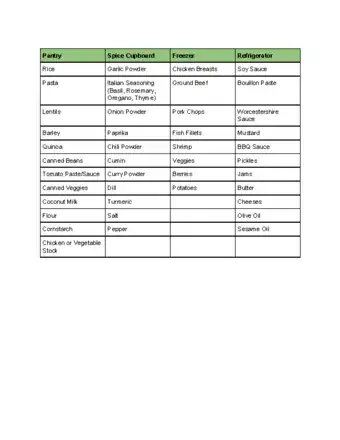 - Stock up your seasonings with spices and herbs like Italian seasoning, garlic powder, onion powder, paprika, chili powder, cumin, curry powder, dill, and rosemary.