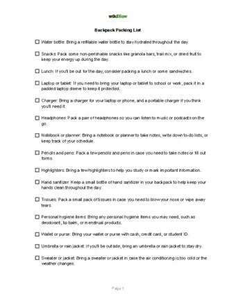 - Remember to pack a charger if needed.[11]