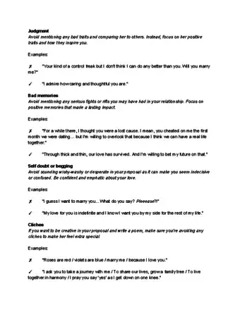 • Your girlfriend might express doubts about getting married or could even say marriage isn’t something she wants. If that happens, hold off on proposing and instead talk about both of your expectations for your relationship.