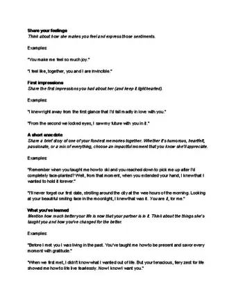 1. Tell her how she makes you feel and how you feel about her. Think back to your first date and how the sparks flew. Start your proposal there, then explain how she makes your life better and you can’t imagine life without her. Finish by telling her you want to spend your life making her happy, then ask her to marry you.[8]