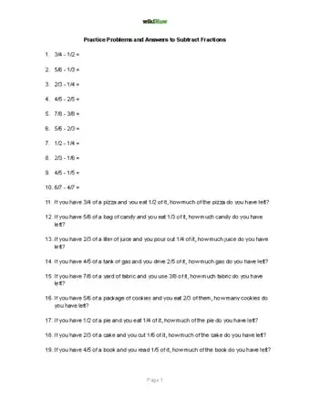 Subtracting fractions may look a little confusing at first but with some basic multiplication and division, you'll be ready for simple subtraction. If the fractions are proper, ensure that the denominators are the same before you subtract the numerators. If the fractions are mixed and you have whole numbers, turn them into improper fractions. You'll also need to make sure the denominators are the same before subtracting the numerators.