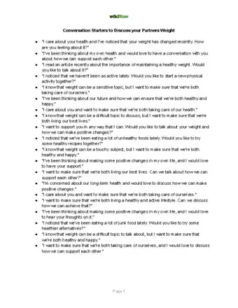 - If one or two serious discussions about weight concerns reveal that your partner is offended at the idea, does not want to manage their weight, has no interest in preventive health activities and despises the gym, drop the discussion. Be sure to offer plenty of reassurance to your partner to avoid causing a rift between you.⧼thumbs_response⧽