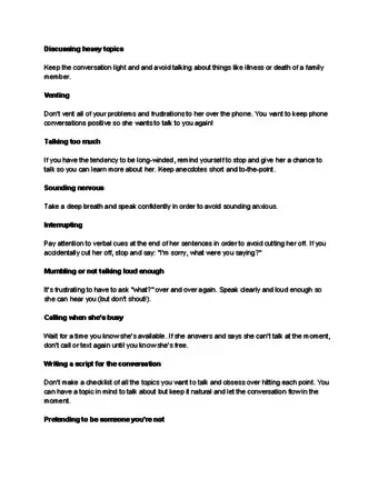 5Get to the point. While it’s good to make small talk with her about her interests and what’s going on in her life, you don’t want to let the conversation ramble on aimlessly. After the initial pleasantries, explain why you called. In most cases, she’ll appreciate your being direct.[9]