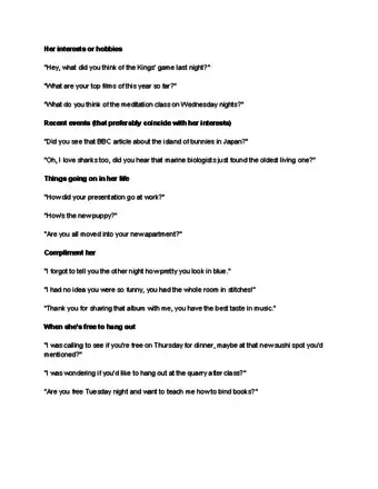 - For example, you might say to her, “You mentioned you’re a baseball fan. What did you think about that game last night?”