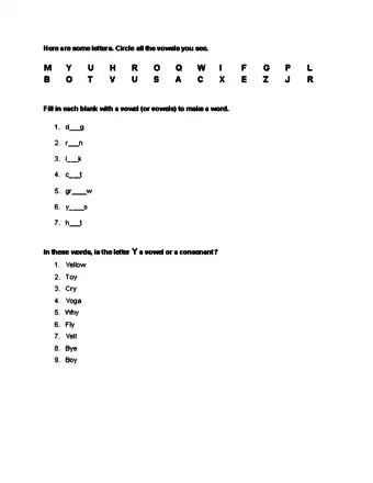 Tell the students that y can sometimes act as a vowel. The letter y can present a challenge for students learning vowels. Sometimes y is a vowel and sometimes it is a consonant.[3]