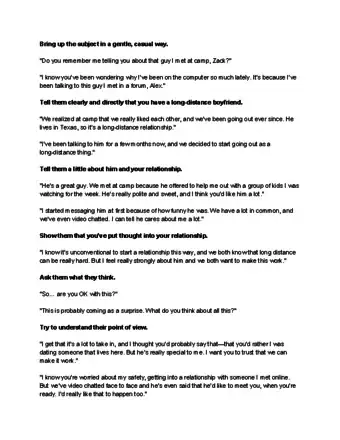 2Explain how you met. Your parents might not be familiar with the many forms of social media and ways of meeting people online.