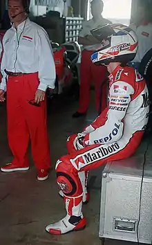Àlex Crivillé Tapias (born 4 March 1970) is a Spanish former Grand Prix motorcycle road racer. In 1992 he became the first Spaniard to win a 500cc Grand Prix and, in 1999 he became the first Spaniard to win the 500cc World Championship.[1][2]