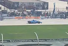 Palou was signed by Chip Ganassi Racing to drive the No. 10 Honda for the 2021 IndyCar Series season.[19] On 18 April 2021, Palou earned his maiden IndyCar Series victory in the season-opening race at Barber Motorsports Park. Palou started on pole for the first time in his IndyCar career at the first race of the season at Texas Motor Speedway, although his pole position was earned due to his early-season championship point lead after qualifying was canceled for the race due to inclement weather.[20] Palou added another podium for the season at the GMR Grand Prix and then finished second in the 2021 Indianapolis 500 to Hélio Castroneves' record-tying fourth victory. Palou's finish in the 500 vaulted him into the points lead for the championship. For the rest of the season, only himself and Pato O'Ward would hold the points lead.