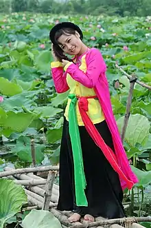 The áo tứ thân (chữ Hán: 襖四身, Vietnamese: [ʔaːw˧˦ tɨ˧˦ tʰən˧˧], four-part dress), is a traditional Vietnamese dress commonly worn in the Northern part of Vietnam. The dress is related to the Áo ngũ thân which translates as "5-part dress".[1]