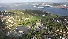 On 30 August 1939, Älvsborg' Coastal Artillery Detachment (KA 4) was raised within Älvsborg Fortress.[3] KA 4 was created through the 1942 Defence Order (1942 års försvarsordning).[4] Älvsborg Coastal Artillery Regiment (KA 4) in Gothenburg was established from 1 July 1942. Through the same Defence Act, Älvsborg Fortress was amalgamated into Gothenburg Coastal Artillery Defence (GbK). KA 4 was subordinated to Gothenburg Coastal Artillery Defence and the Coastal Artillery Defence Commander also became regimental commander. KA 4 began to be set up on 1 October 1942 with a first stage comprising three artillery companies, a signal company and yrkes (occupational) company.[5] On 1 October 1944, the regiment was raised according to plan with nine companies: 1st Battalion: 1st and 2nd Company as a seafront artillery partly outside and partly within GbK. 2nd battalion: 11th Company as signal company, 12th Company as a naval mine company and 13th Company as yrkes company (not machinists and firemen, which was part of the 12th Company). In 1942, the island of Känsö was taken into use as an accommodation and training area.[5] The new barracks establishment at Käringberget for KA 4 was completed in stages. The chancellery and two barracks were taken into use in 1944. Three barracks, a dining facility and an officer and non-commissioned officer mess were taken into use in 1945 and in 1948 the extension was completed in its entirety with offices, messes, kitchen, dining room, canteen, school premises, storage, etc. During the following years, many alterations and extensions took place within the barracks area, as well as the regiment's organization being changed partly in 1955 and partly in 1960 and to some extent in 1981.[5]
