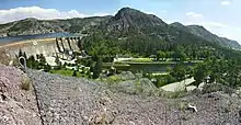 The Çubuk-1 Dam is a concrete gravity dam on the Çubuk Stream near Çubuk in Ankara Province, Turkey. It is located 12 km north of the center of Ankara and was built to control floods and provide drinking water to the city. Its construction lasted from 1930 to 1936; Mustafa Kemal Atatürk attended its inauguration on November 3, 1936.[1] It was the first concrete dam constructed in Turkey and the first constructed in Ankara, and is recognized by Turkey's Chamber of Civil Engineers as one of the country's top 50 engineering feats.[2][3][4][5] It is owned and maintained by the Turkish State Hydraulic Works and was constructed at a cost of 2.32 million TRY.