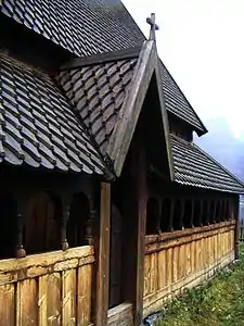 Øye Stave Church (Norwegian: Øye stavkyrkje) is a parish church of the Church of Norway in Vang Municipality in Innlandet county, Norway. It is located in the village of Øye. It is one of the churches for the Øye parish which is part of the Valdres prosti (deanery) in the Diocese of Hamar. The brown, wooden stave church was built in a long church design in 1965 using plans drawn up by the architect Ole Øvergaard using pieces salvaged from the old 12th century church that had originally been torn down in 1747. The church seats about 30 people.[1][2]