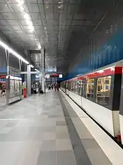 Überseequartier is a station on the Hamburg U-Bahn line U4. The station was opened in November 2012[1] and is located in the Hamburg quarter of HafenCity, Germany. HafenCity is part of the borough of Hamburg-Mitte. The station code is "UR".