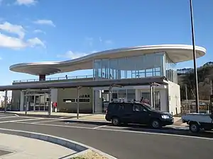 As of 2018, the station have been rebuilt along with the rest of the closed segment of the Yamada Line. It was transferred to the Sanriku Railway upon completion on 23 March 2019. This segment joined up with the Kita-Rias Line on one side and the Minami-Rias Line on the other, which together constitutes the entire Rias Line.[1] Accordingly, this station became an intermediate station of Rias Line.