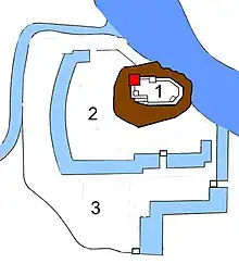 Local records[1] state that, by 1331, barricades and small fortresses punctuated the Jizōgatake, a strategic mound overhanging the Hiji River (肱川, Hiji-kawa) . The defensive compound as it stands today, however, was not erected until 1585–1617. Toyotomi Hideyoshi and Tokugawa Ieyasu unification campaigns brought constant shifts on the incumbents of Ōzu domain (大洲藩, Ōzu-han), including Wakisaka Yasuharu, Kobayakawa Takakage, Tōdō Takatora, and Toda Katsutaka warlords. Among them, renown castle designer Takatora is believed to have been the major contributor to the overall outline of the current structure.