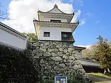 During the Meiji era (1868–1912), abandoned and exposed to the mercy of inclement weather and natural hazards, the castle deteriorated rapidly. Threatening collapse, in 1888 it was decided to demolish the keep. Nonetheless, its two surrounding turrets (櫓, yagura), Koran Yagura and Daidokoro Yagura, were left intact. These two elements, built in late Edo period (1603–1868), as well as the Owata and the Minami Sumi turrets were declared in 1957 Important Cultural Property by the Agency for Cultural Affairs of the Japanese Government.[2]