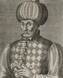 An engraving of Mustafa by André Thevet, dated 1584