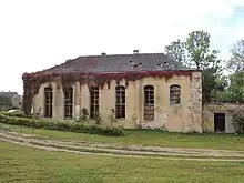 At the end of the 18th century, the nobleman Mykolas Rionikeris settled Protestant artisans from close by East Prussia in Žemaičių Naumiestis. In this time, the border was permeable. The community members were running their own school as early as 1800.[23] The church community was at first tended to by Prussian priests and in 1800 became a Chapel of ease of the parish Tauroggen.[24] 327 members of the Protestant community lived in the town in 1824. Usually the cantor conducted the church services.[24] The prayer house burned town twice at the beginning of the 19th century.[23] A church was erected in 1842 from donations. In 1919, the community received its first pastor. When the Germans were evacuated in 1941, community life came to a halt. After the end of the war, a part of the German inhabitants returned. A new Protestant community was founded in 1947. In 1958–1960, the community was again severely depleted as a result of emigration on the basis of the exit agreement between the Soviet Union and the Federal Republic of Germany.