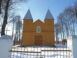 The village is located in southeastern Lithuania, in the northern part of Varėna District Municipality. The nearest town is Onuškis, 11 kilometres (6.8 mi) to the north. It lies 16.6 kilometres (10.3 mi) north of the town of Varėna, the seat of the municipality. Vilnius is 53.2 kilometres (33.1 mi) to the northeast. The surrounding landscape is made up of marshland, peat bog and forest, with several lakes also nearby, including Lake Lielukas, Lake Netečius, Lake Steginis, and Lake Juodikis.[3][4]