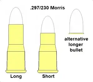 The .297/230 Morris Short and .297/230 Morris Long are both rimmed bottlenecked centrefire miniature rifle and pistol cartridges.[1]