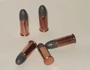 The .38 rimfire cartridge was a common round for many antique revolvers and rifles from the 1870s to the early 1900s. It was a common self-defense round for a small revolver that was often kept in a vest pocket through to the 1890s. Production in the United States of rimfire calibers larger than .22 ceased upon the country's entry into World War II and was never resumed again by any of the major manufacturers. Factory loaded ammunition is no longer available except as collector items.